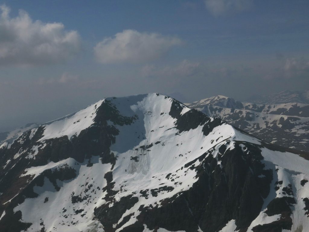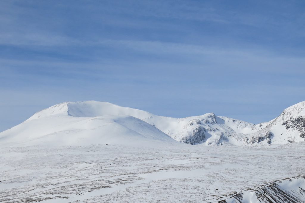 Quick snak at Sgurr Mor which we reachjd at 2:00 pm the we were off to the fourth peak by 3:00 pm. The wind was so strong that we had to crawl to the summit from the leeward side and touched the top because we could not stand. We retreated by the same route. Headed back toward Sgurr Mor to avoid a snowfield and down to the bealach by the second summit.
