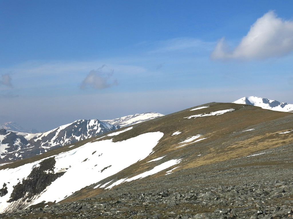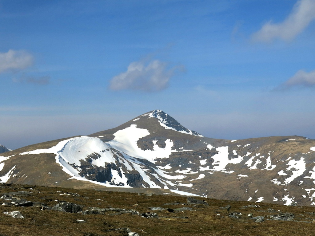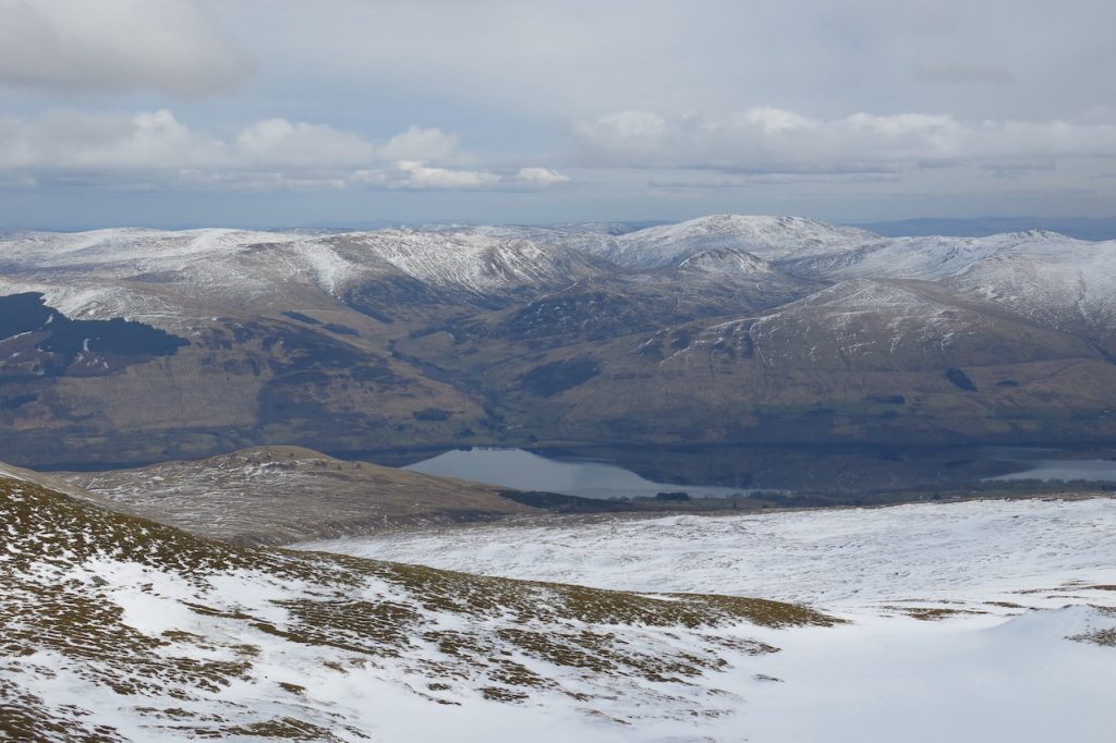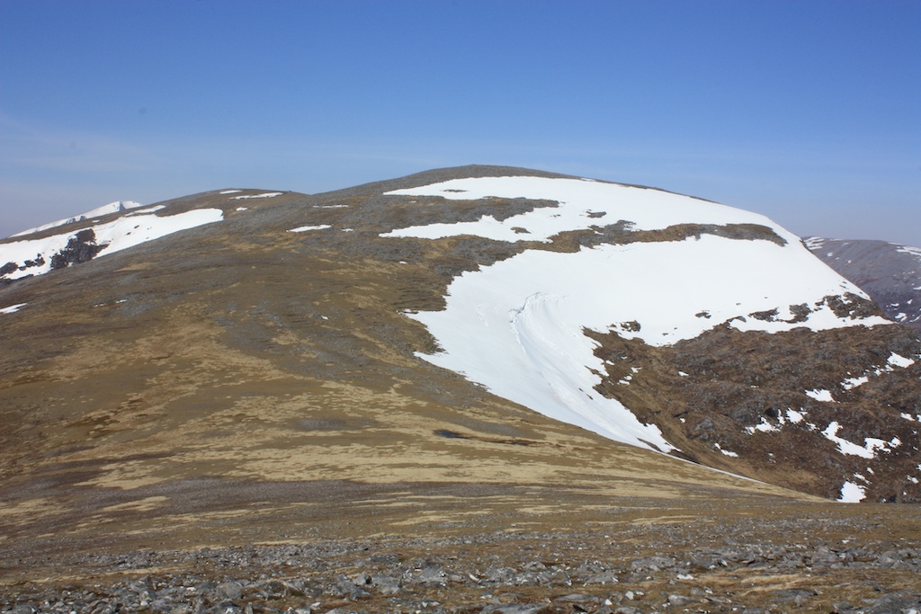 Our first objective after settling at the B&B was to deal with some unfinished business from 2004 – completion of the Ben Lawers group of Munros. Our previous hike had been cut short from this 5-summit walk because one of our group fell and broke and arm in the descent from An Stuc. We could see lots of snow on the summits.