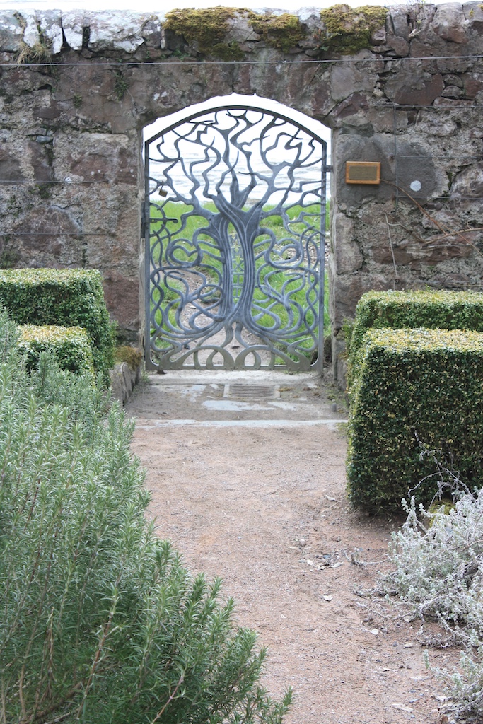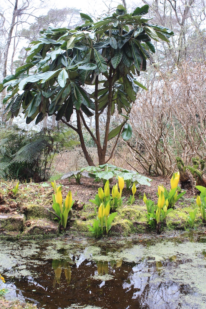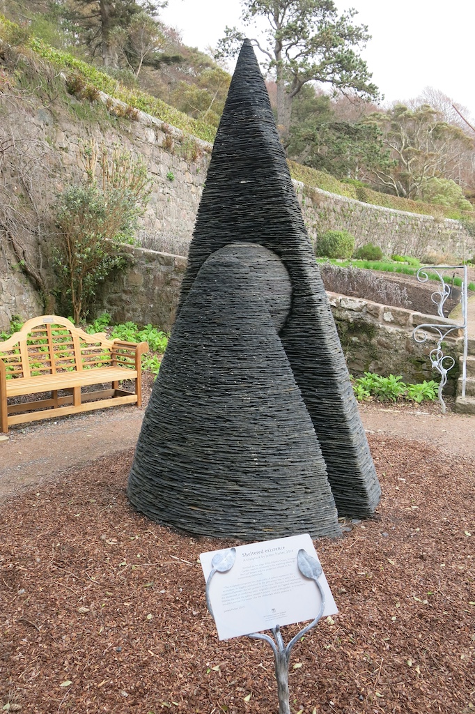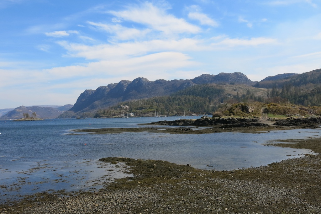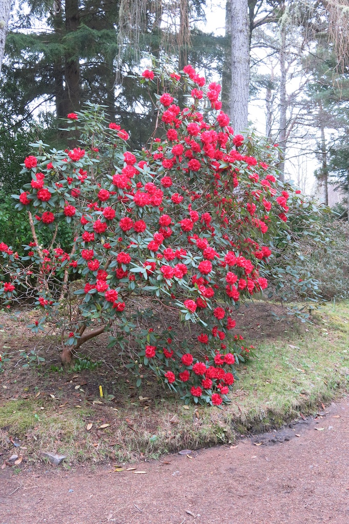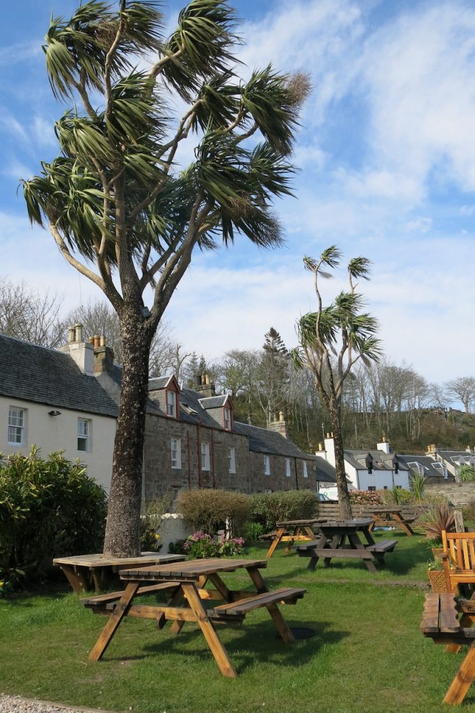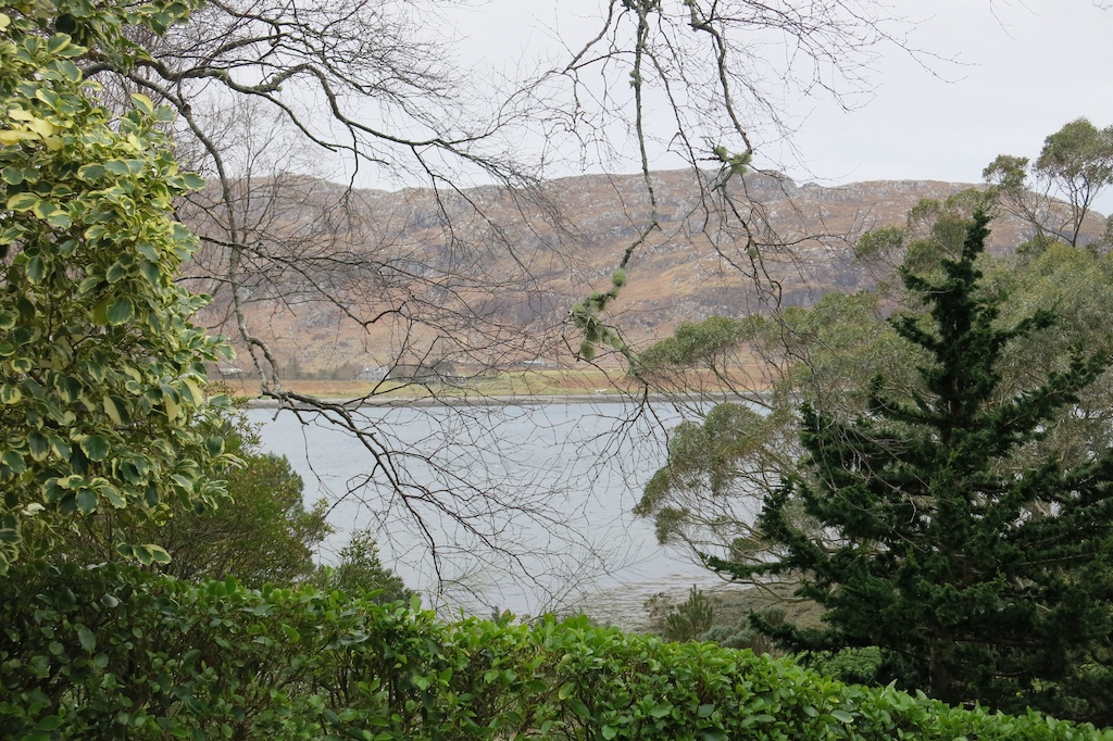 Most of the day was spent at Inverewe Gardens where we joined the National Trust for Scotland. It’s a Victorian era collection of plants from around the world. Many varieties of rhododendron, some in bloom. Huge cypress, cedar, etc. Plenty of spring understoryplants in bloom: arum, lily, grape hyacinth, skunk cabbage (just like home), lungwort, healthy rhubarb and espaliated trees in the walled garden. There are winding paths through plantings and around small ponds. There is a viewpoint over Loch Ewe where seabirds can be seen.
