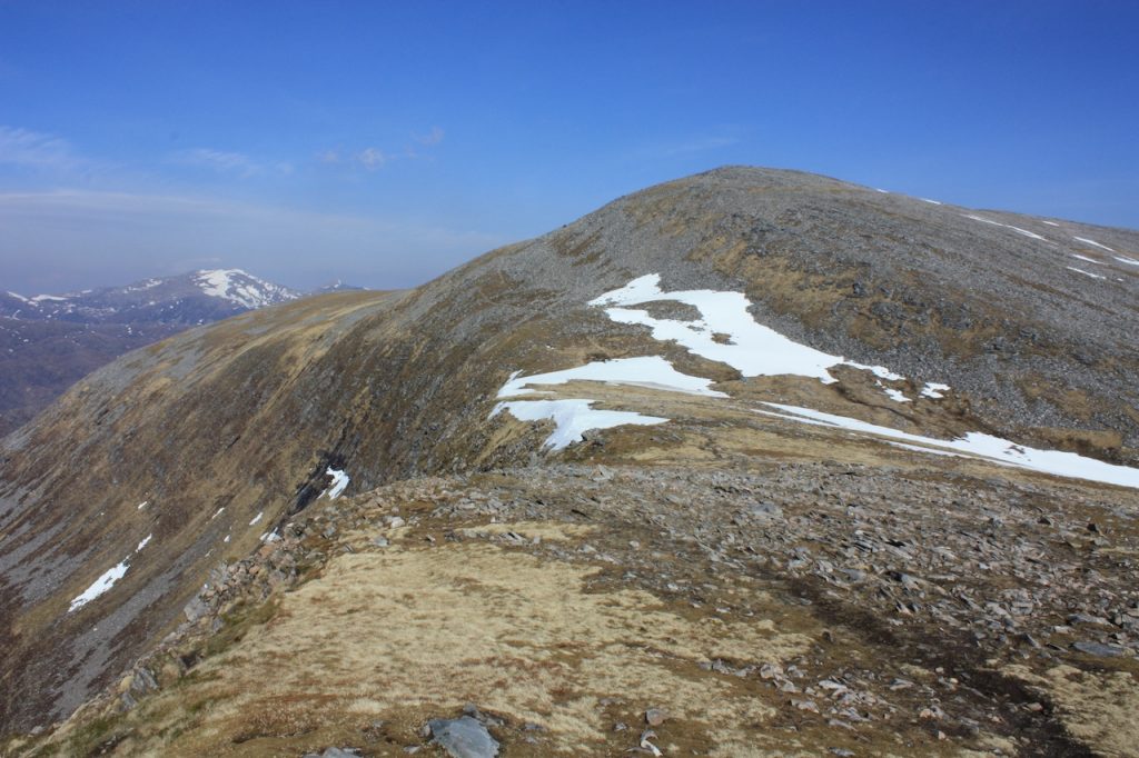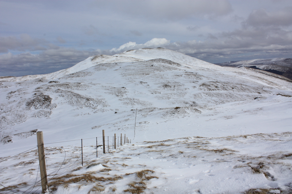 Next we went down to the col and up following fence posts to the summit of Meall Garbh via the North ridge.