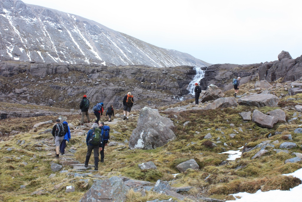 Joined a large group heading for the glen in the Ben Eighe nature reserve. Started up the valley east of Liathach.