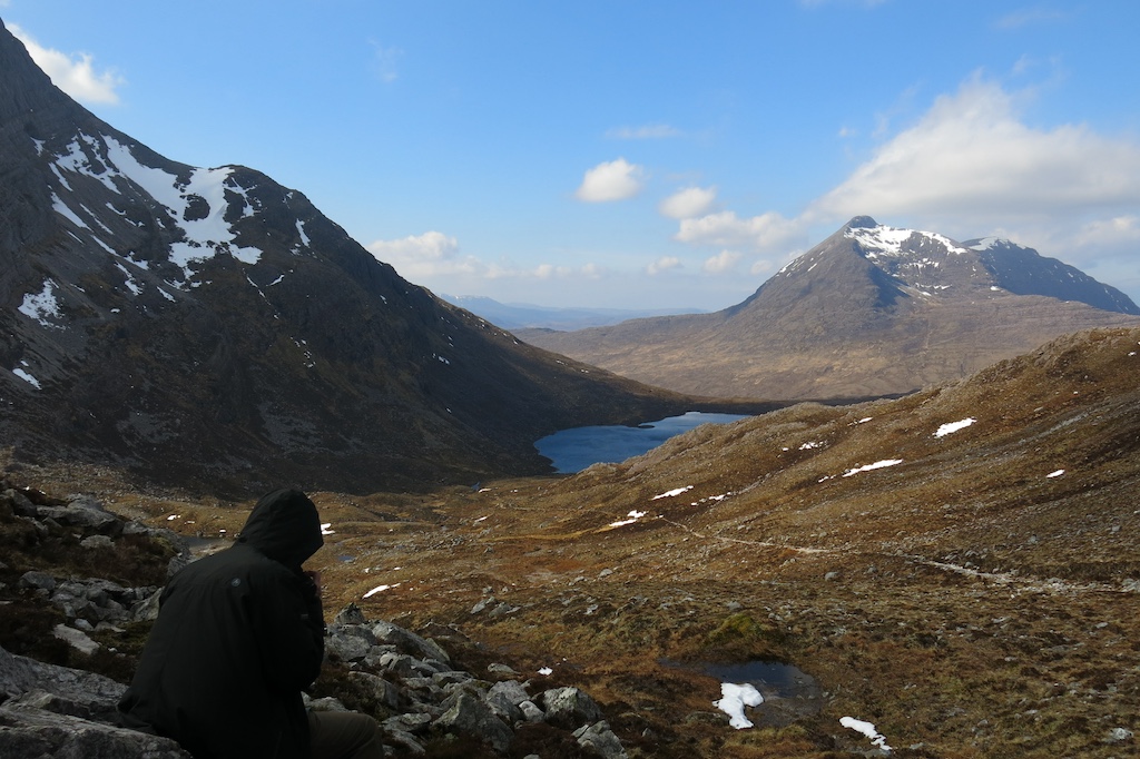 It was a quick stop for tea and gorp at the summit of Meall Griegh after a steep climb and complaining from calf muscles.