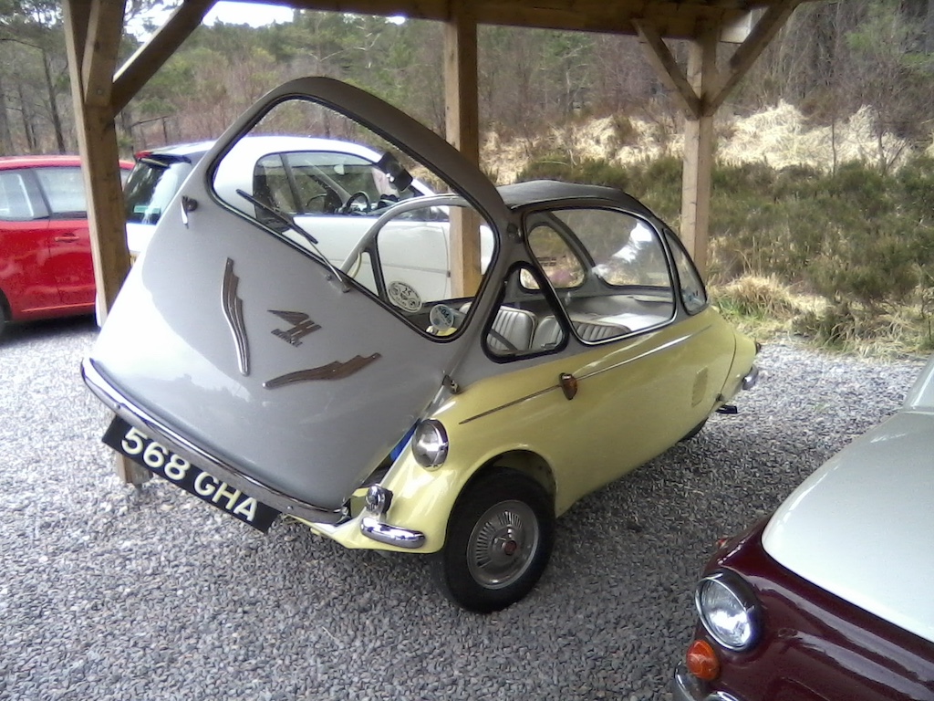 We headed for Poolewe and the Post Office, at some pint we stopped at the Beinn Eighe visitor centre in Kinochewe and looked at the exhibits. Participants in a microcar rally were parked outside including a 1960s Fiat 500 and a Heinkel bubble car.