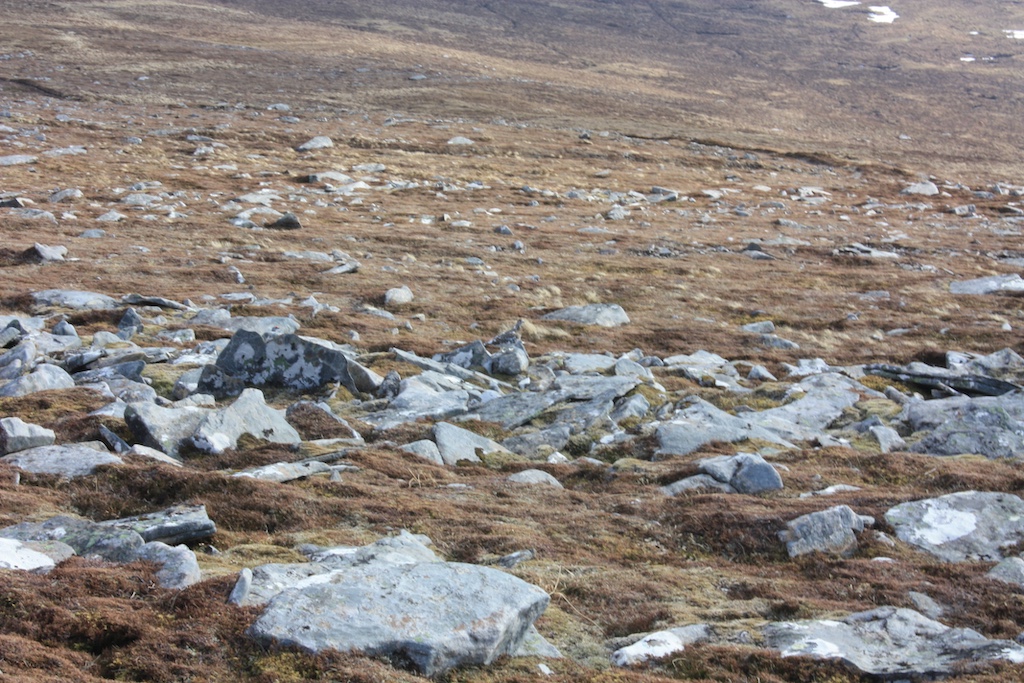 The route continued clockwise around the north of MCD. Many puddles with frogs’ eggs. There was a view of Liathach.