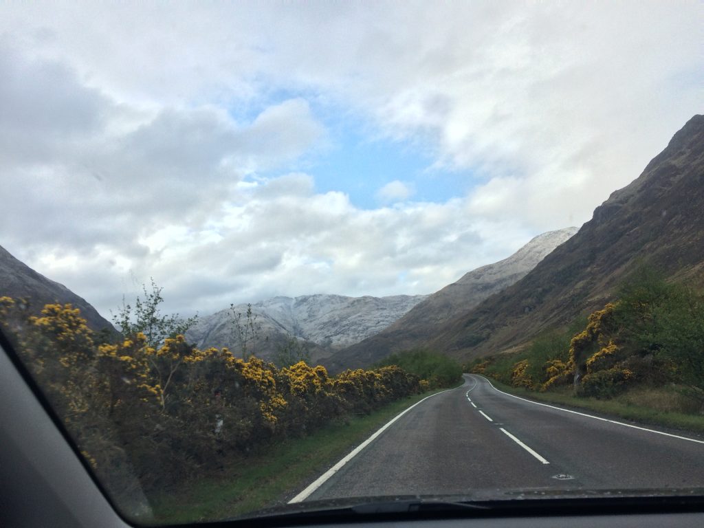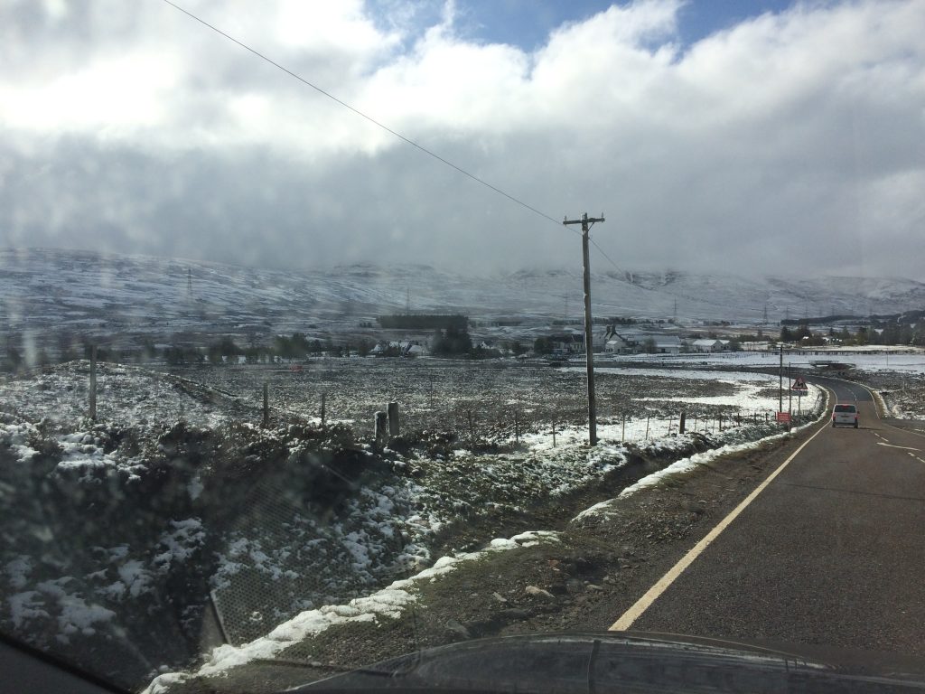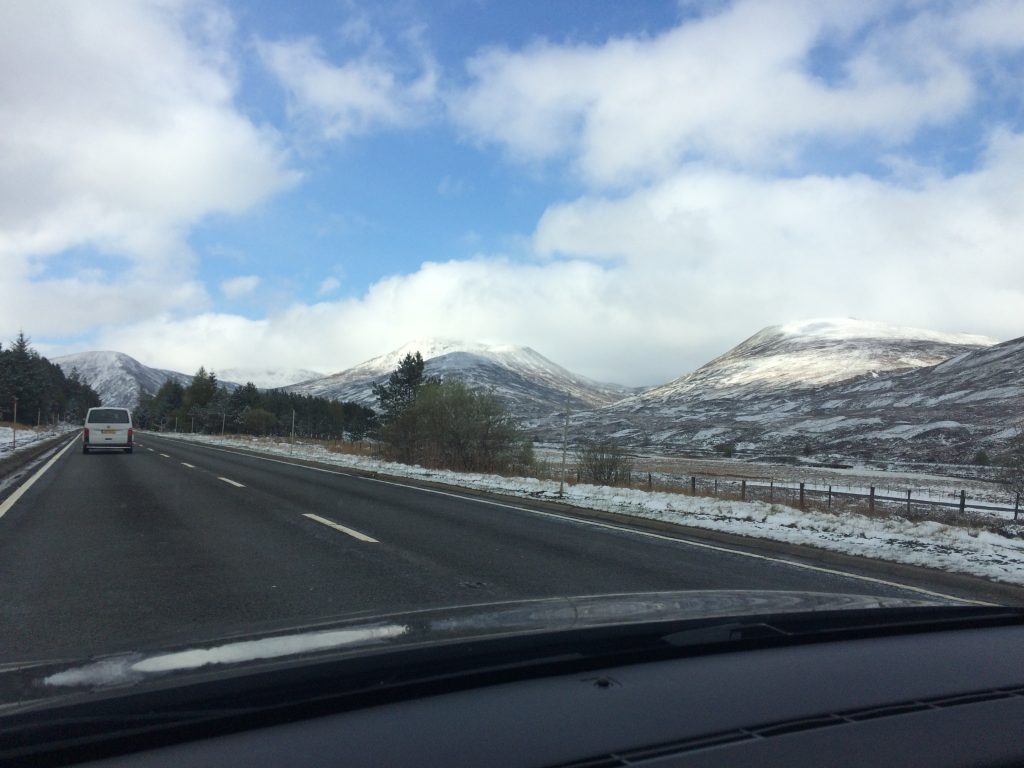 We had to return the car to the Avis rental office at Edinburgh Airport and so drove south via Kintail, Glengarry, Spean Bridge, the A9 and the new Forth Road Bridge. We passed many familiar places like Loch Lochy, the Drumochter Hills and Loch Leven. It had snowed overnight and the summits were white. We met up with Jesper for a snack at House of Bruar. Jesper took us on to York for our stay with Gail . She had organised a “mini college reunion” with Tony Gregory.