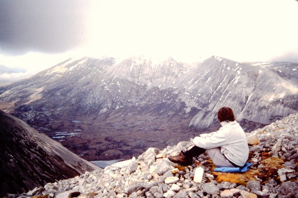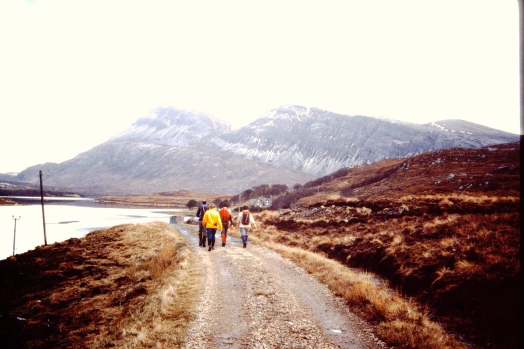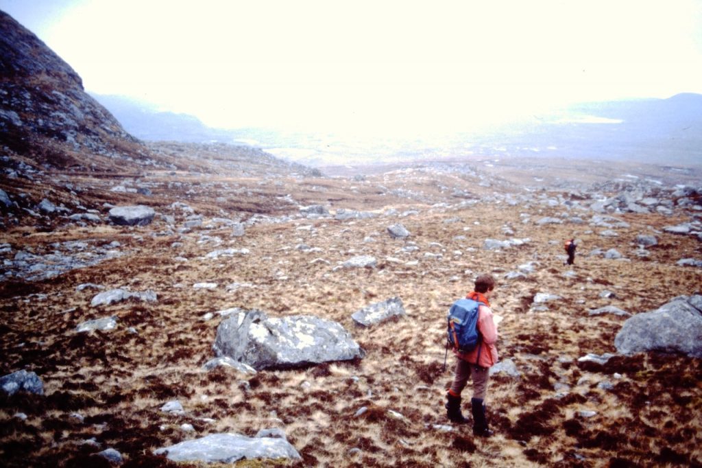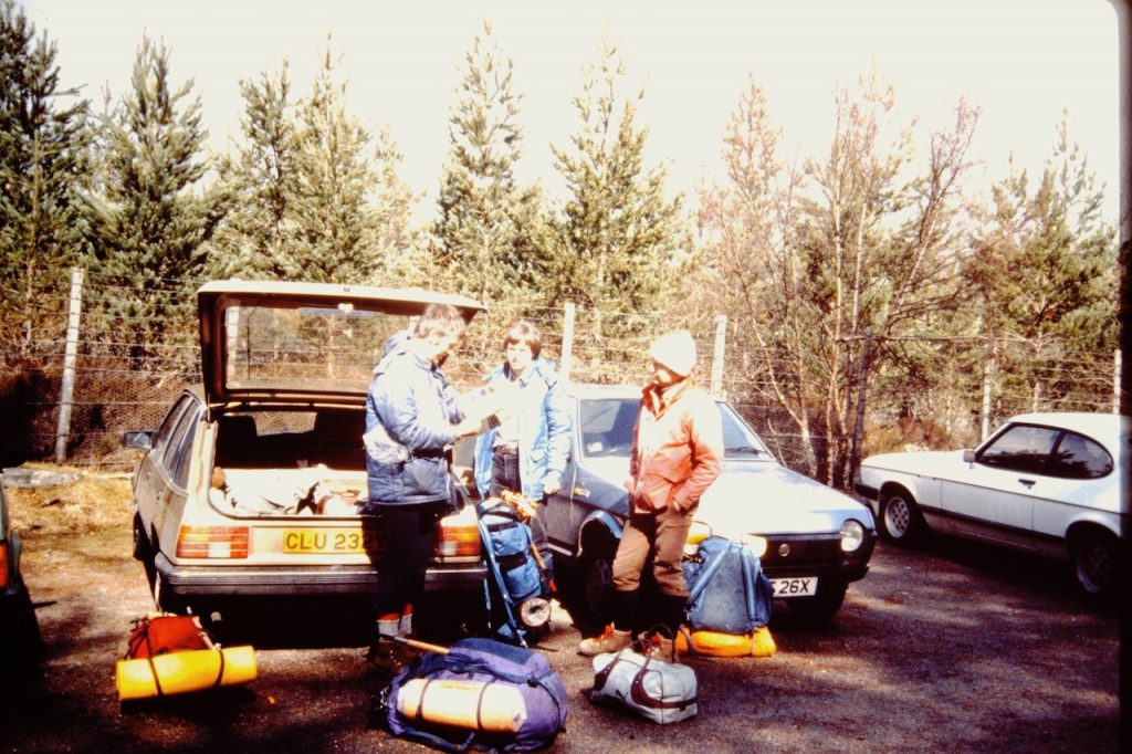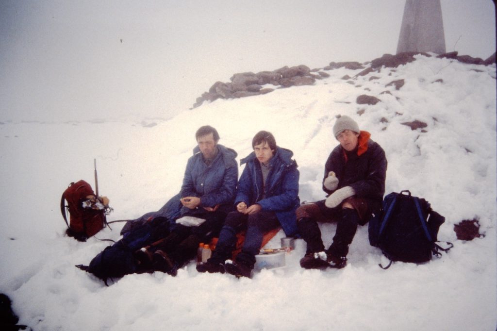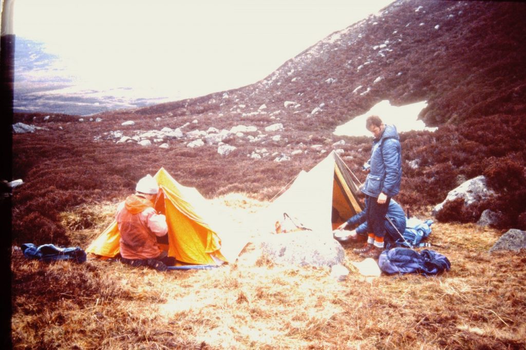 There was the usual breakfast in Stirling and then on to a wild camp. This time the target was Ben Macdui. We left the car (Phil’s ICL company Cavalier again) at the Lynn of Dee and took the track out toward Derry Lodge. It was abandoned then (it hasn’t changed in 2016), but in the 2000s there have been suggestions of reopening it as some sort of hostel. We must have walked quite a bit further before setting up camp. Overnight the weather turned to rain and the following day was miserable, but that has never deterred this group.