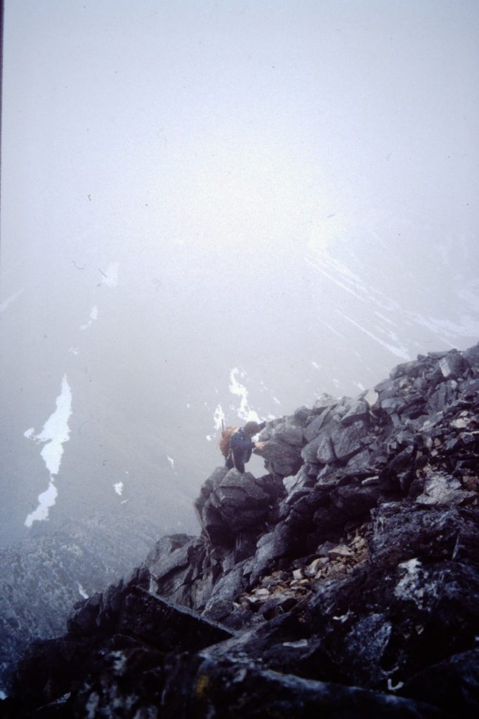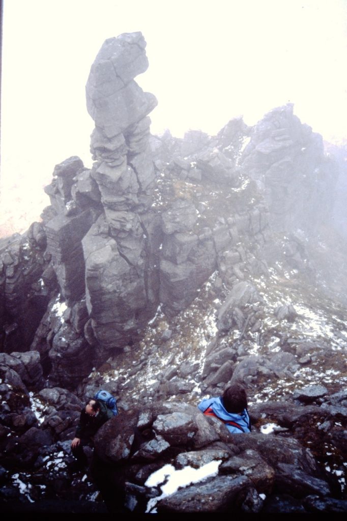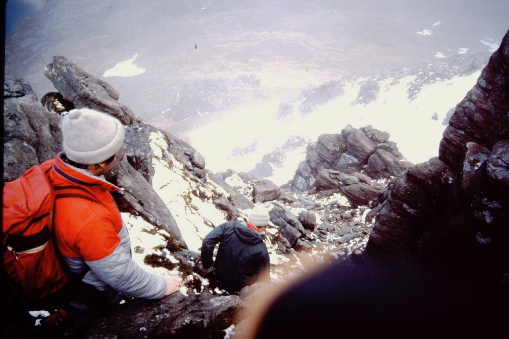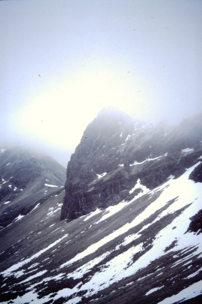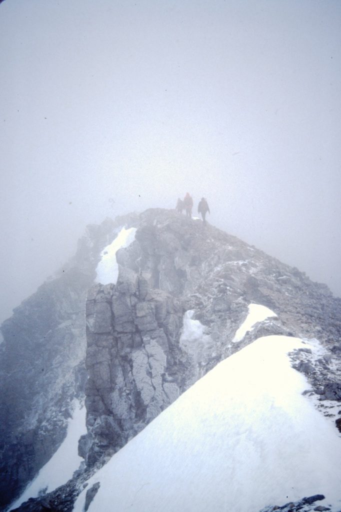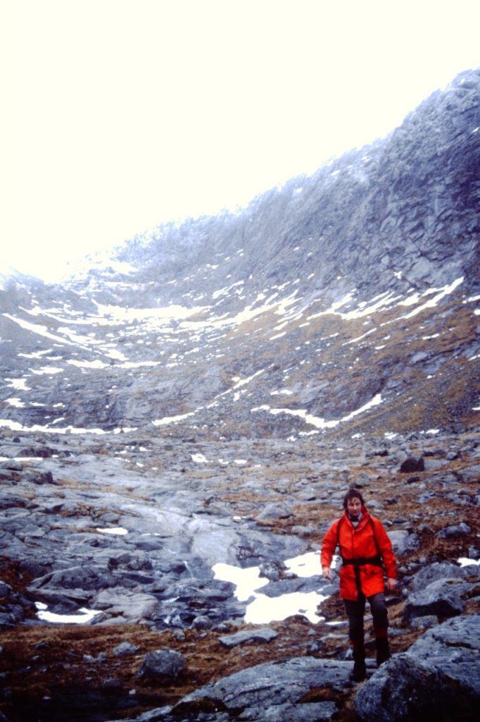 There was the usual breakfast in Stirling and then on to a wild camp. This time the target was Ben Macdui. We left the car (Phil’s ICL company Cavalier again) at the Lynn of Dee and took the track out toward Derry Lodge. It was abandoned then (it hasn’t changed in 2016), but in the 2000s there have been suggestions of reopening it as some sort of hostel. We must have walked quite a bit further before setting up camp. Overnight the weather turned to rain and the following day was miserable, but that has never deterred this group.