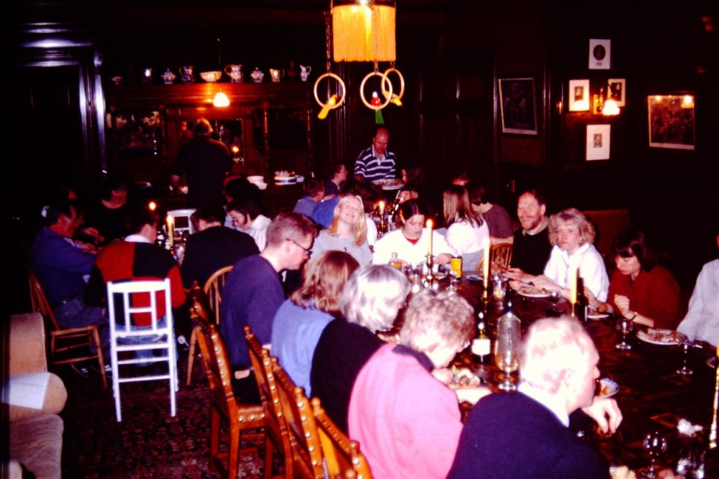 Betsy and I were in the servants quarters. It had a non-working dumb waiter, but it had a huge kitchen and eating space. This was the first year that we cooked a main course – lasagna, with a vegetarian option. The kitchen in the servants’ quarters was great for preparation, but we needed to supplement the Aga cooker by using ovens in the main house.