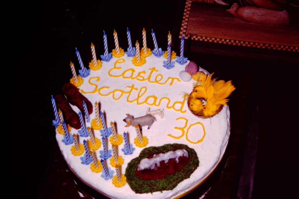 2001 was a notable year because it was the 30th Easter trip. Some people had attended all of them. Phil found the perfect place for us to stay at Kinlochmoidart on the Ardnamurchan peninsula. This was the first time for many years that we had all been able to stay in the same place. It’s a very grand building split into several vacation rentals on 20,000 acres (actually quite small by the standards of some of these estates). We took the whole place and there was a record number of attendees. Of course there was a cake to note the occasion.