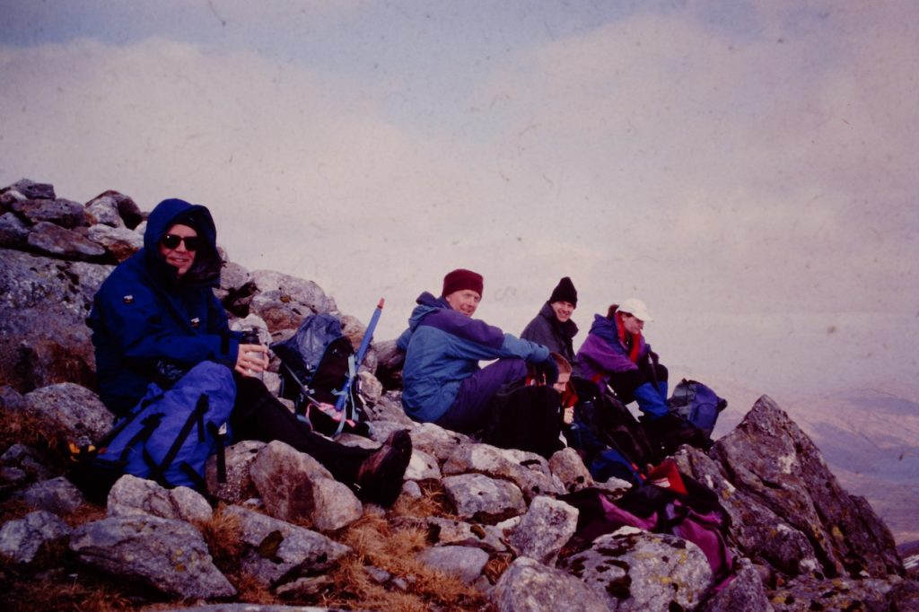 I think that this was the final summit. Liz England at the front, Dave Wharton at the back. This hike showed us that we were way out of condition. I was incredibly slow in descent. Dave stayed back with us.