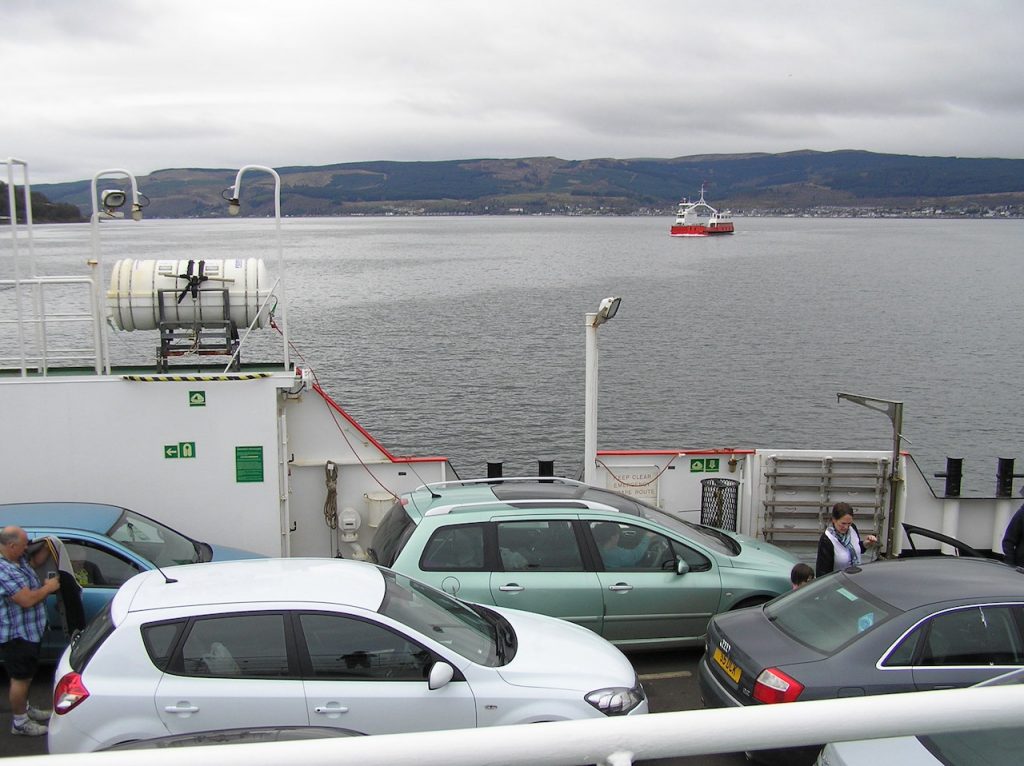 Back to the Castle for lunch. The afternoon saw us shopping in Dunoon. The weather was sunny, but soon turned windy and grey. We were just back at the house before hail. Whitecaps in the loch. Swim before dinner of smoked salmon starter, beef casserole, roast potatoes, green beans, trifle. Thwaites Wainwright beer