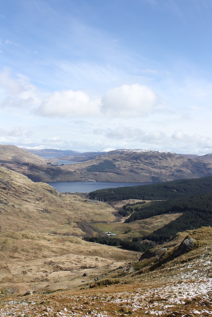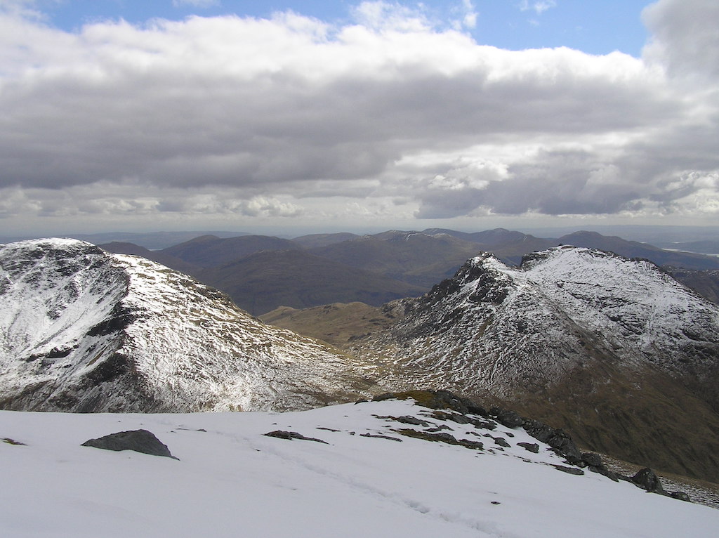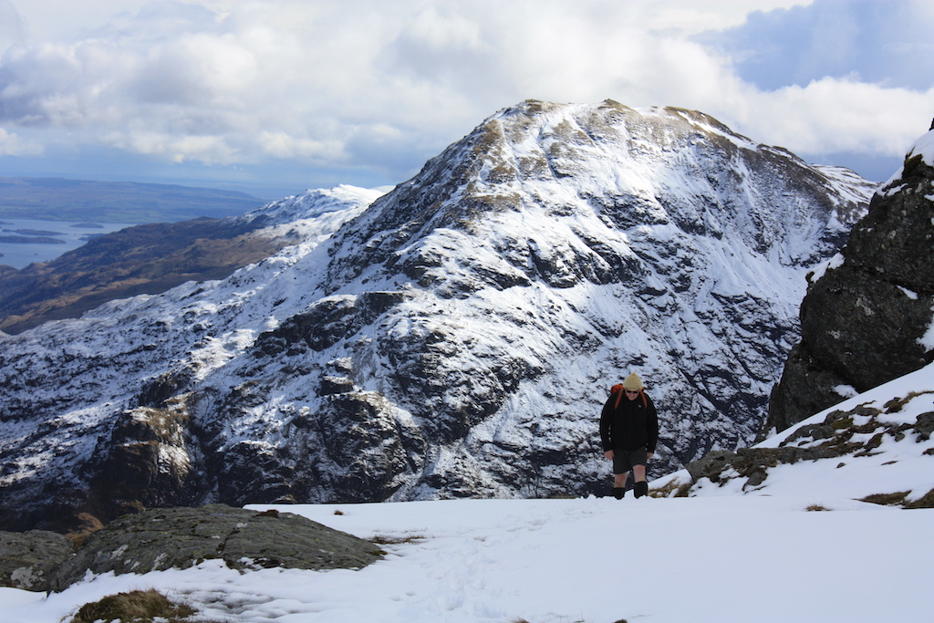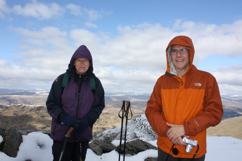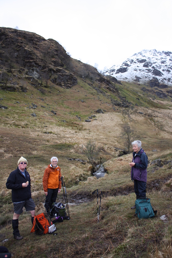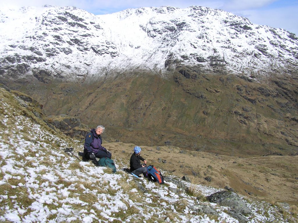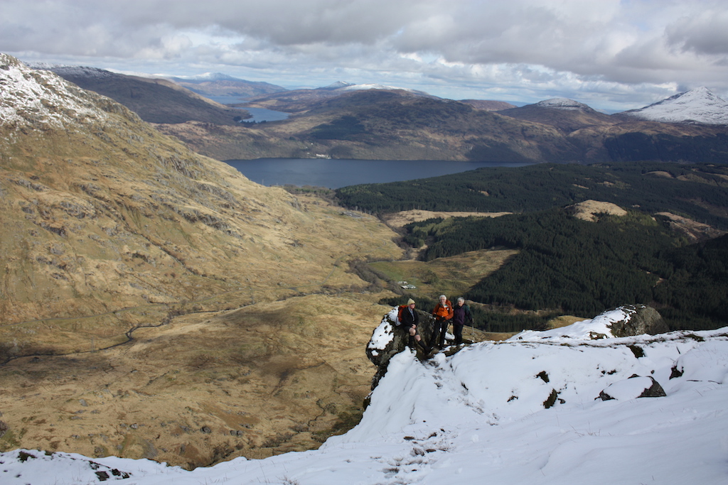 A good day, but we were a bit late. We met another party at the summit of Ben Narnain and followed them down the south side – a very steep and slippery route with snow and mud.
