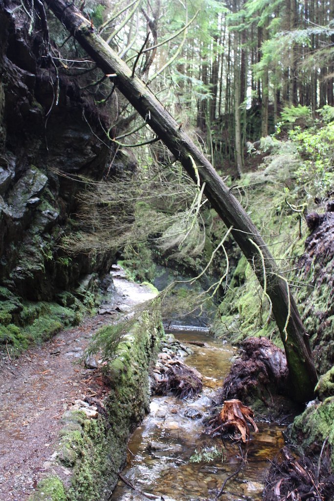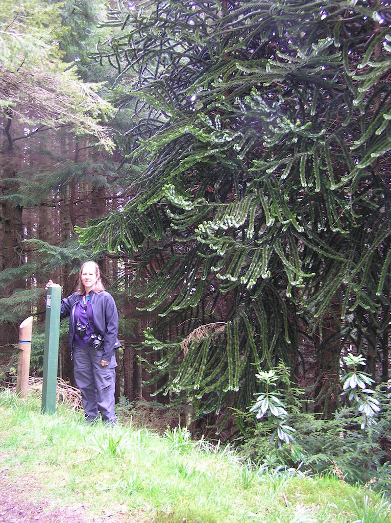 This area has been a place for the Forestry Commission to test out breeds of trees for use in their plantations. The Forestry Commission was set up by Churchill after WWI to ensure a supply of wood for lumber. The trials were from the 1930s to the 1970s to check hardness in damp Scottish weather. It’s now managed by Forestry and Land Scotland. There are many paths and we visited a lot of them. Trees from China, Japan, Australia, USA, Including eucalyptus, monkey puzzle (from Chile), fir, spruce, hemlock, maple and pine.