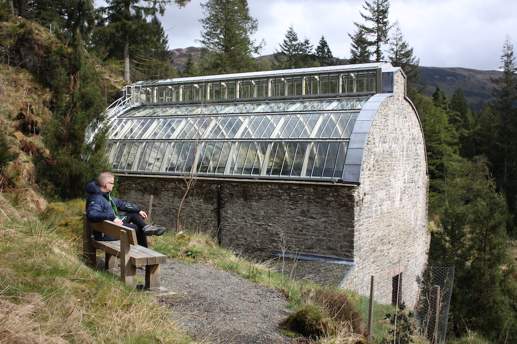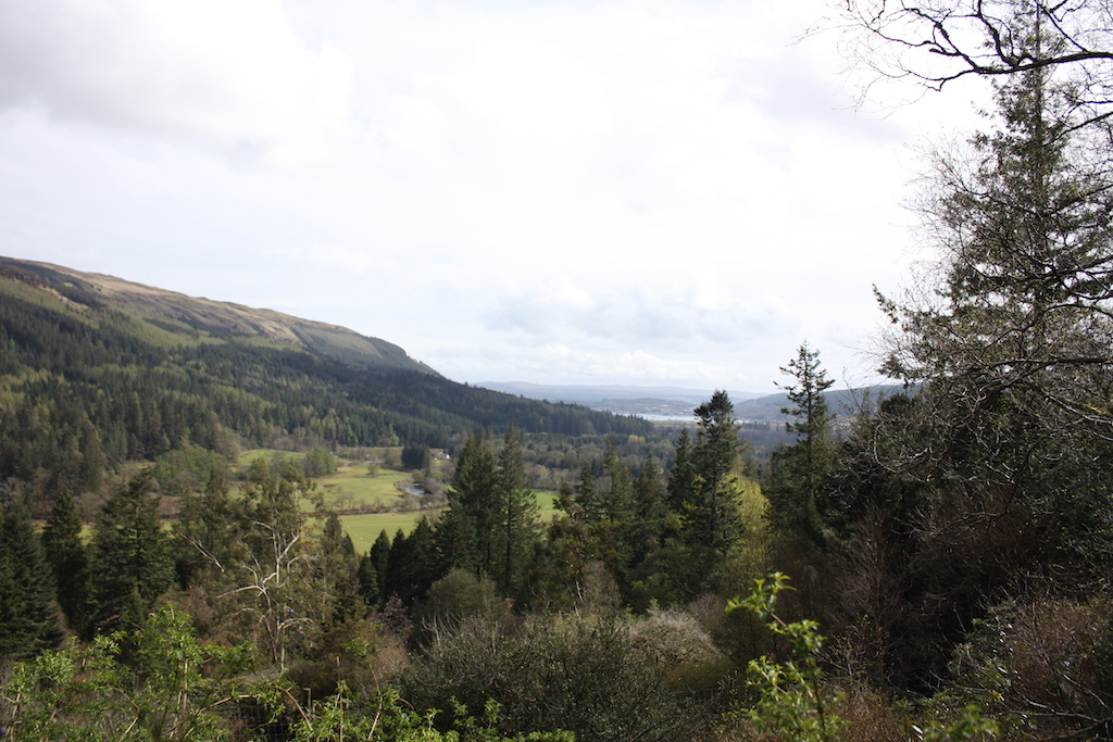 Monday 9 April. A slow start.After washing clothes, we set out for Benmore botanic gardens with Jesper, Bob, and Richard. A welcome rest after the rain of the previous day. A rain shower soon gave way to sun and blue skies. Benmore is a sprawling arboretum with many variaties of redwoods, rhododendrons, There’s a restored Victorian “farmery” meandering paths and views down to Holy Loch. It’s associated with the Royal Botanic Gardens, Edinburgh.