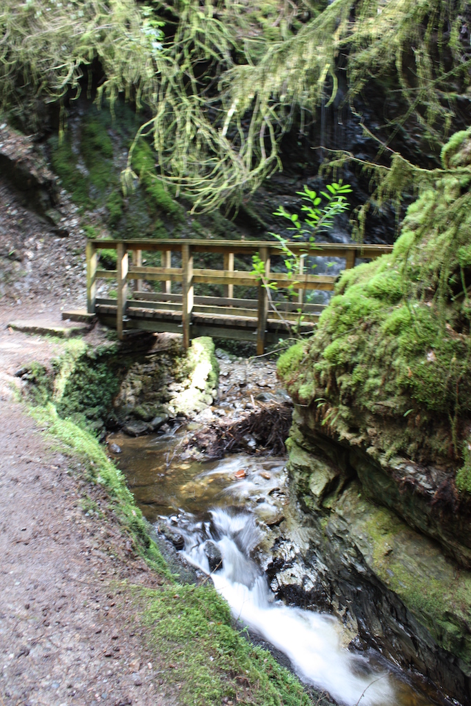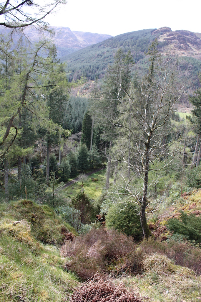 The route started along a forestry track then followed a narrow, steep path alongside a brook. Views of Ben Arthur (aka the Cobbler) on the way. I have memories of this hill from my teens. It’s a long story, but on a school trip I was considered too young and weak to take it on and was consigned to hang around Tarbet on Loch Lomond on a miserable day while the teacher took the stronger children up the hill. I would be that those “leaders” would be in big trouble if they did that these days.