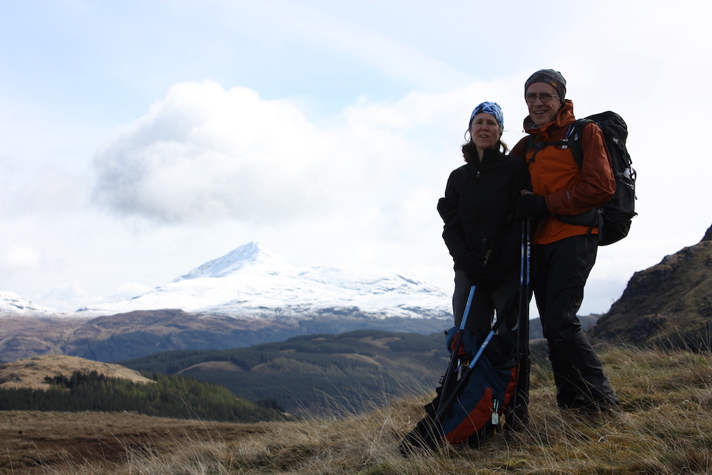 Tuesday 10 April. Richard and Christine joined us for a crack at Ben Vane. Start point was again Inveruglas. There had been significant snowfall since Sunday and this created some problems.
