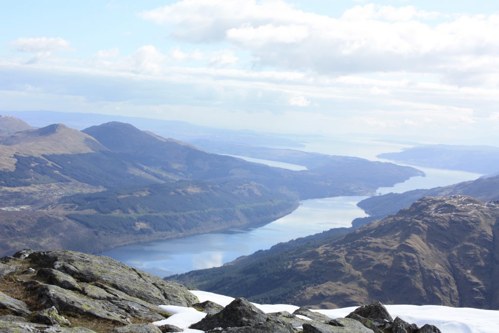 Thursday April 12. The weather forecast was good, so we headed for Ben Ime and Ben Narnain with Christine. The start point was on the “Rest and be Thankful” pass. A road splendid in views, but notorious for landslips and closures. The name comes from the old days when reaching the highest point. We were able to avoid the “pay and display” parking area and used a free spot after been directed there by the manager of a campground (he let use use the loos too).