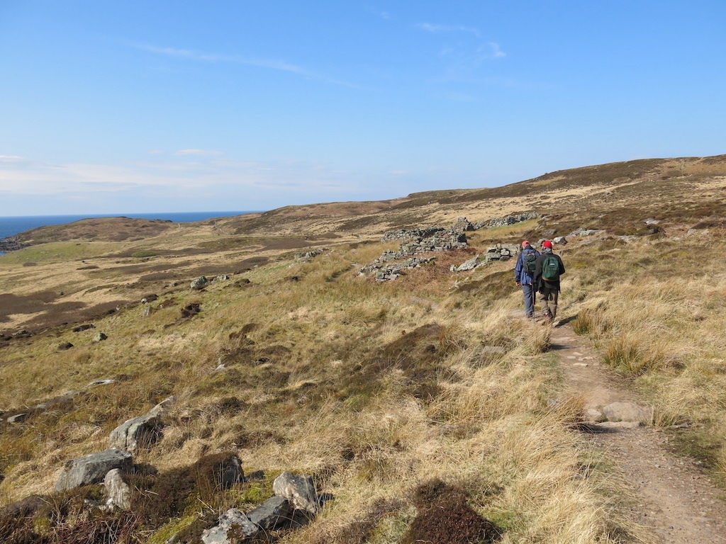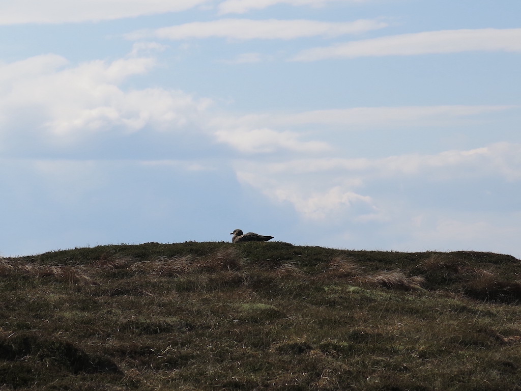 Weather first class – clear and sunny. This was a great day for birding. Great skuas nesting everwhere, Lots of oystercatchers, meadow and rock pipits, wheatears, sylarks, 2 puffins mixed with kittiwakes on a cliff, ringed plover nesting near the path from the beach There were lizards shining on the boardwalk. A flock of great skuas bathed in the lochain. Many photos. Here’s a few: