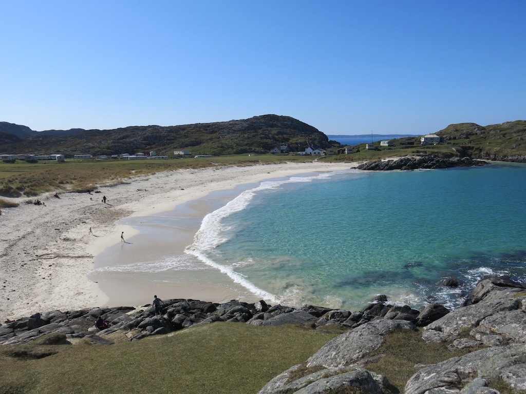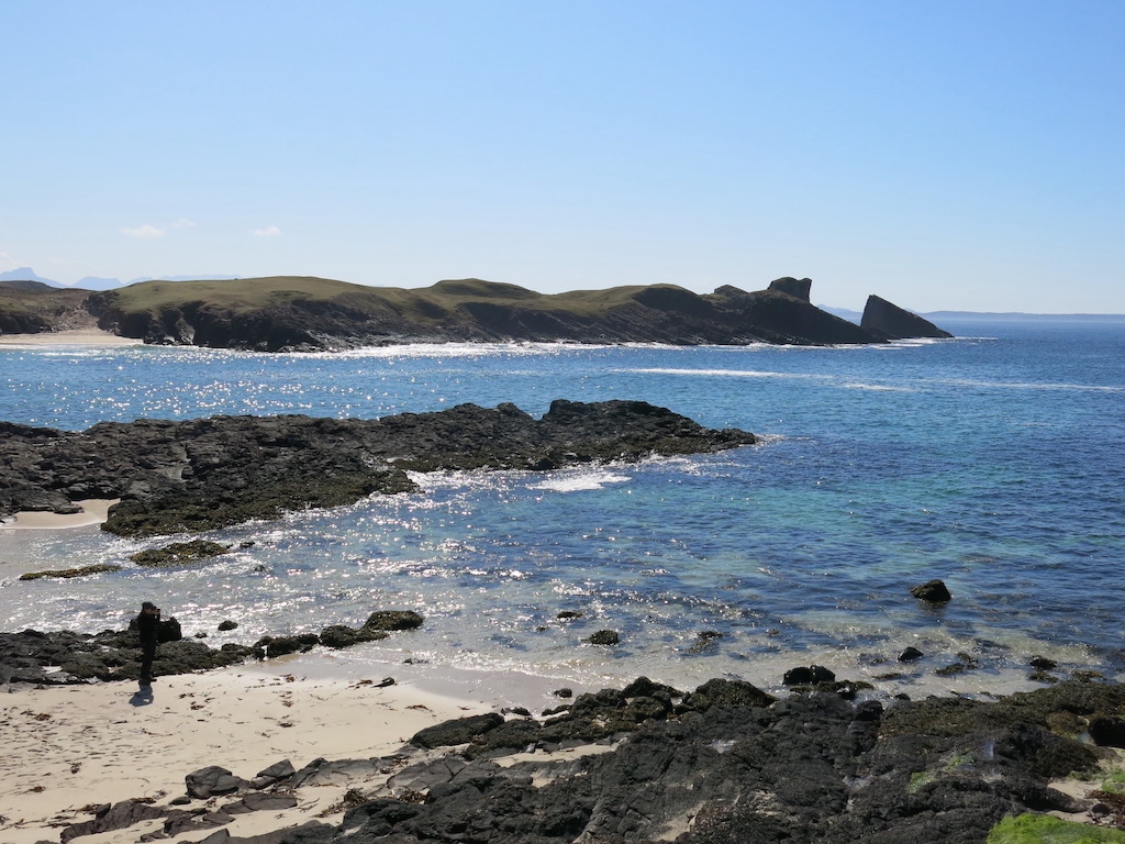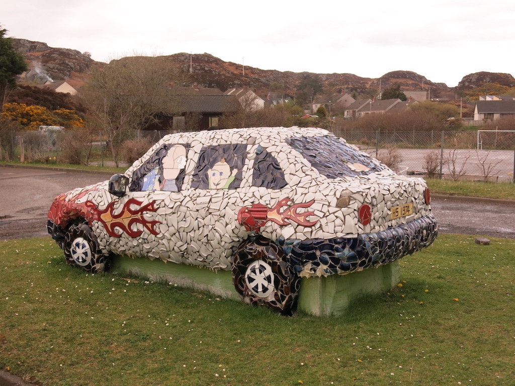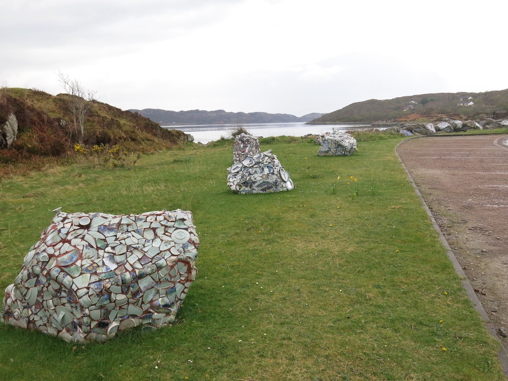 Clachtoll Beach – Salmon fisherman’s bothy and house set up with figures dressed appropriately Also there was a history of Rev Norman Macleod who broke away from the established chuch and went to Nova Scotia. Saw a skein of geese going North. Probably to Iceland. Picnic lunch at the waterside, used the prize winning public loos.