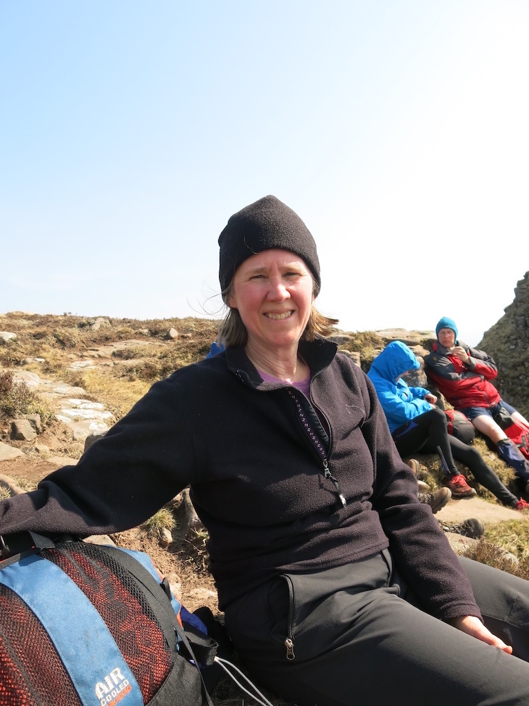 There was a warm, but buffeting wind. We had lunch at the col between the main and subsidiary summits where it was sheltered. Then we went on to the summit cone which was an experience in that wind.