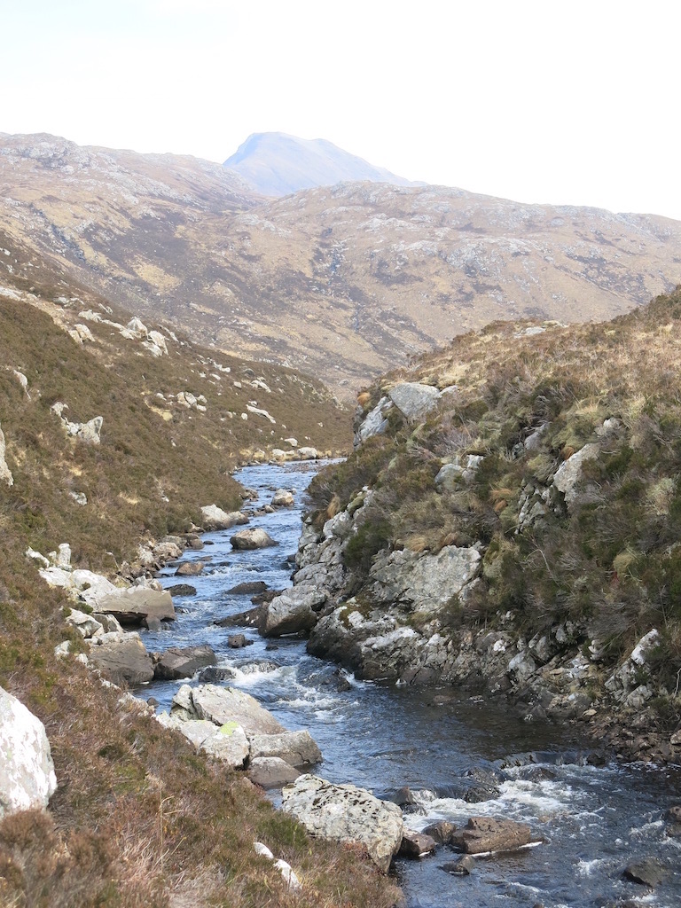 How could we not go there? It was a 1 1/2 walk to turn off the Land Rover track, then across slightly boggy ground, over two ridges to the lochan at the base of the hill, the straight up.
