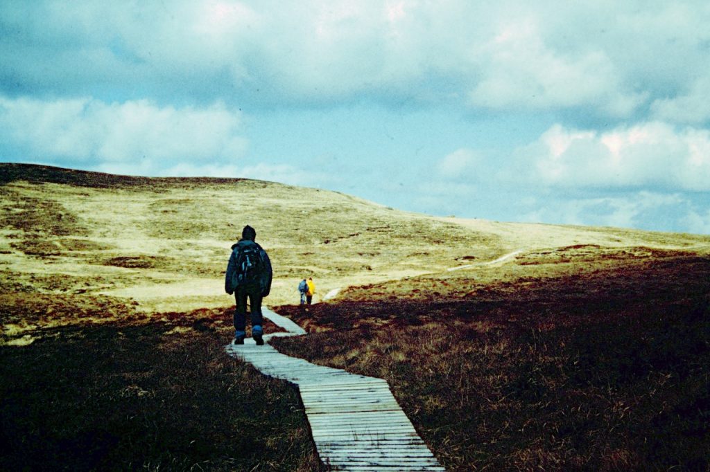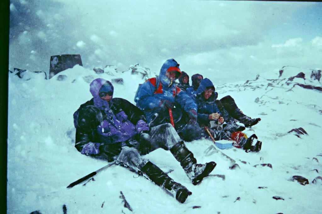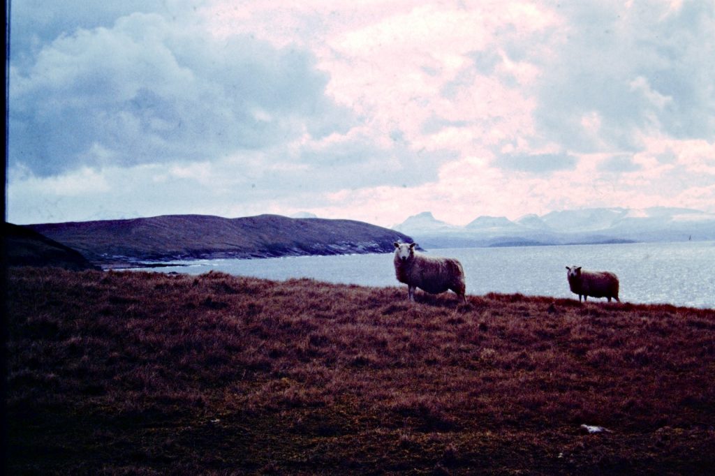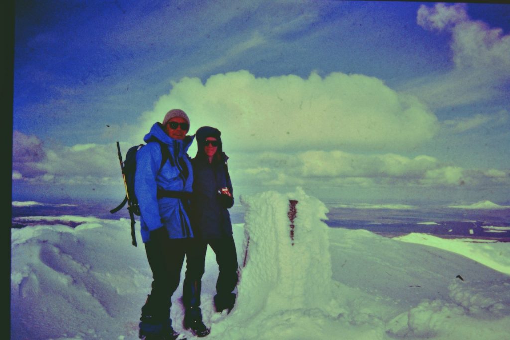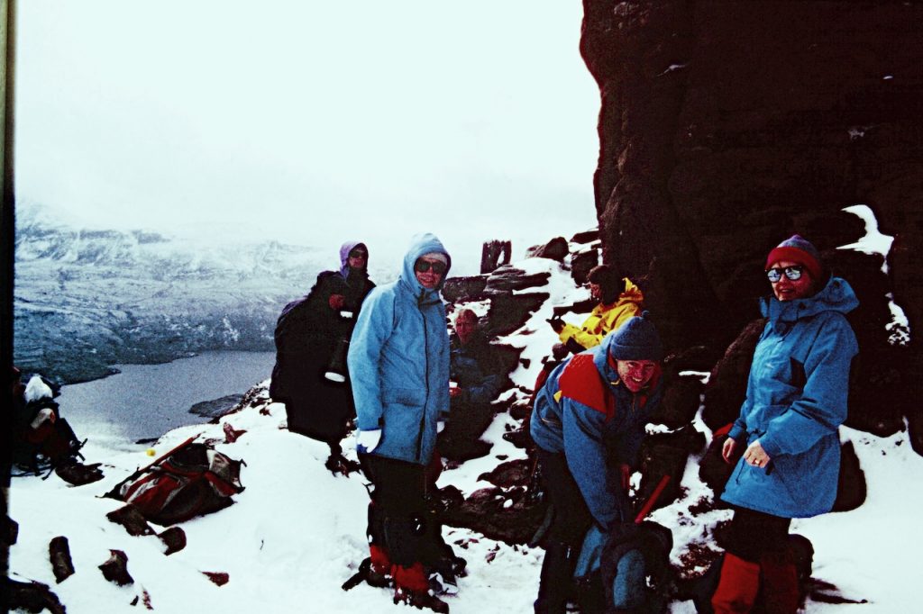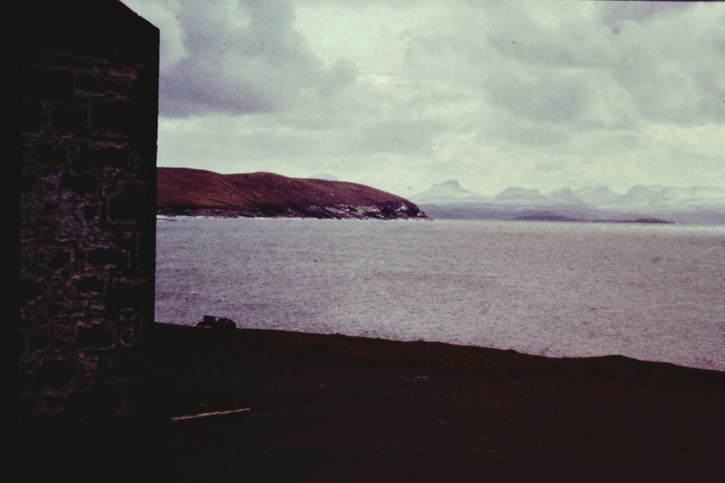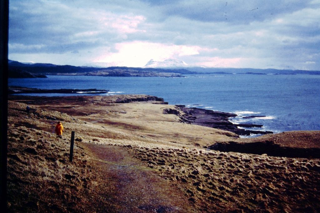 Another image I have of this trip was “bleakness”. There were snow squalls and rain spells throughout the week. Betsy doesn’t entirely agree that it was all that bad, but it was cold and although there were some good days and some successes (Ben Klibreck for instance) there were also some miserable ones. My impression of bleakness might have been caused by the photos which were all very dark. Also this could have been the film and processing – my ancient cheap slide scanner doesn’t help too. Anyway, I have tried to brighten them up for this story. Having complained a lot I can say that as always we loved it, discomforts included!
