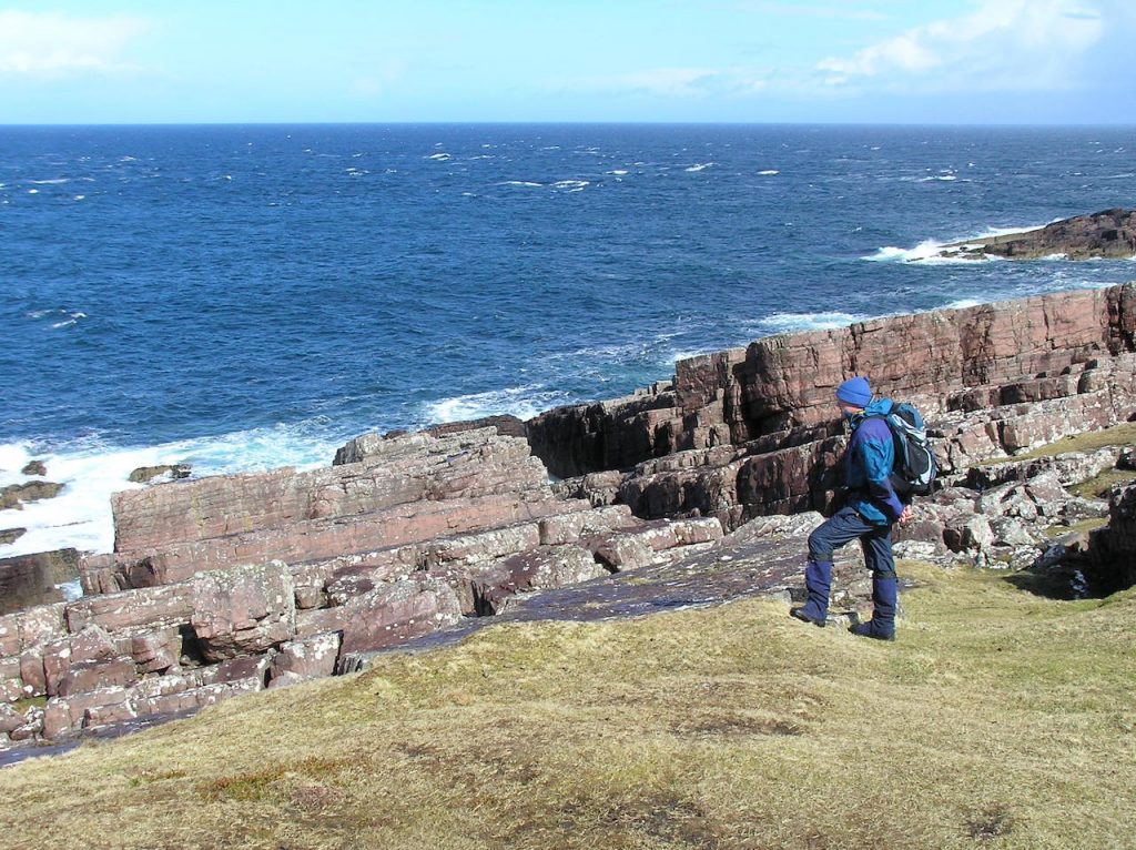 Dave examining the large tilted sedimentary rocks that are a feature of Rubba Reidh Point