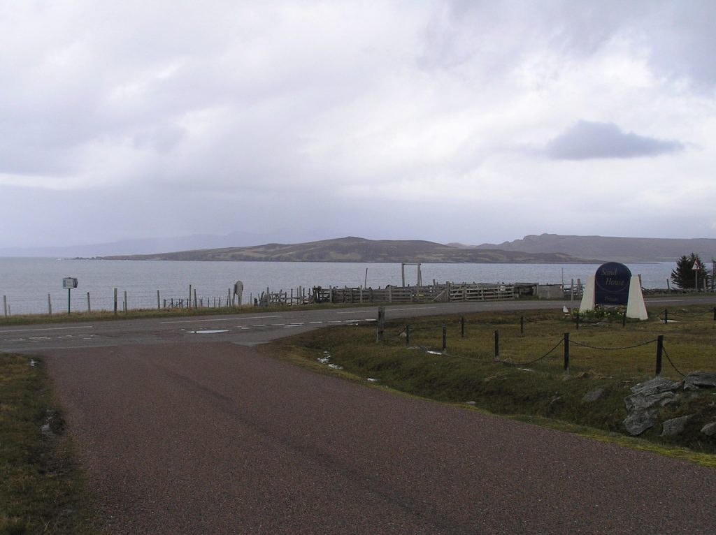 In Day 2 (Monday) there was a lot of heavy rain. Dave W suggested a trip to the WW2 exhibit at Aultbea. There was not much to see, but apparently during hostilities, the area had been the hub of a Russian supply route. At the time we were there a NATO refueling station was on the shore – it might still be there. Afterwards we continued to Poolewe with Clive C and Dave W to see more WW2 displays. Visited the Slioch outdoor shop. Betsy ordered a made-to-measure hat and I bought a wallet big enough for ₤ notes – wallets for dollars are smaller.