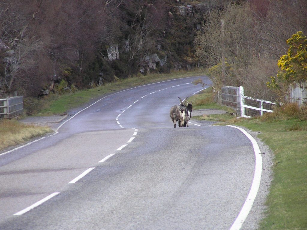 Beware of goats in road