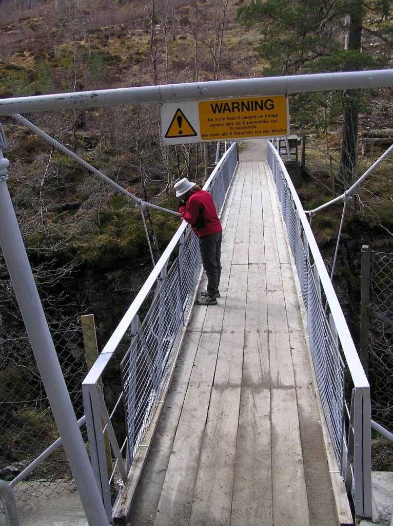 On Wednesday 19 April we had a slow start. Betsy had hurt her ankle the previous day, so we decided on a quiet easy outing. Betsy picked up her new hat from Poolewe then we drove northeast towards Ullapool. Our first stop was Corrieshalloch Gorge.