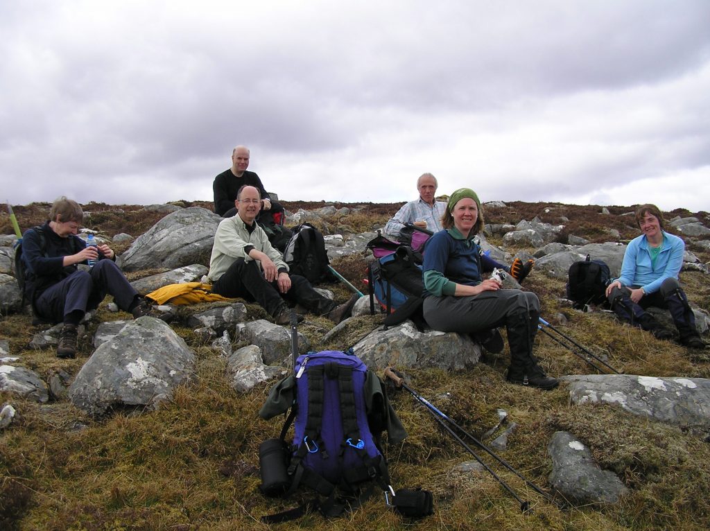 Di, Clive J, Clive C, Phil, Betsy, Lynn on Ben Dearg