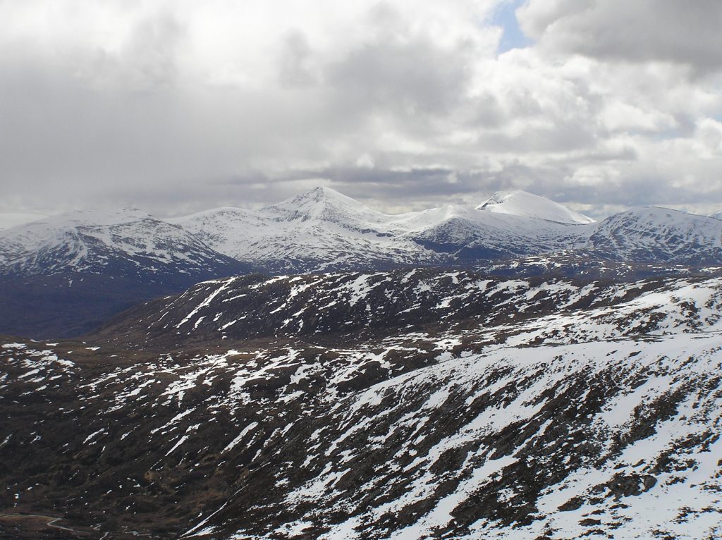 On Friday 20 April, we were off again. This time with Phil as leader of a big group heading for a couple of peaks near Ben Dearg. In fact of the group of four summits that could be done on this day, Betsy and I had already climbed the most northerly one, Eididh nan Clach Geala on Tuesday.