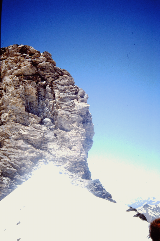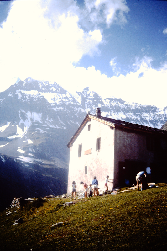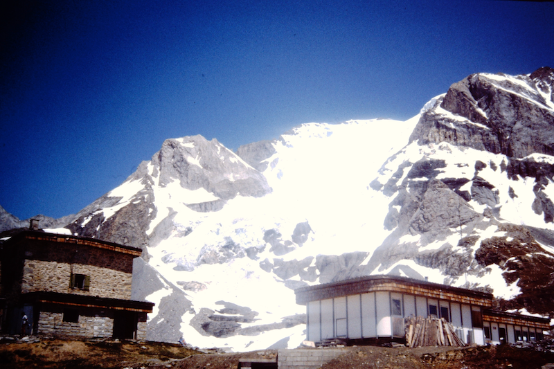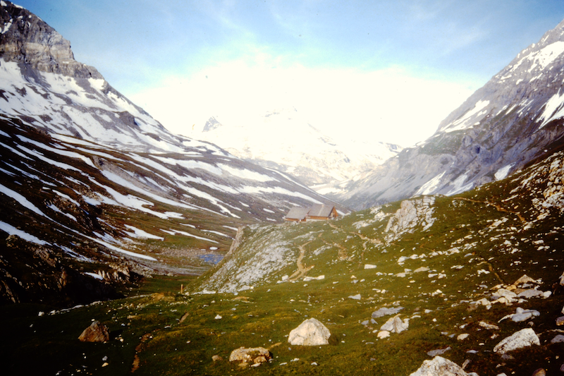 I remember several things about this refuge. My fairly new boots started to fall apart. I was proud of them, they were steel reinforced for crampons, but the right sole came away at the toe. The people at the hut lent me a screwdriver and gave me some wood screws. I was able to make a temporary repair that lasted for a while, but I swore never to buy this brand of boot again. That company (Meindl) is still in business and I see them for sale here in the USA sometimes.
