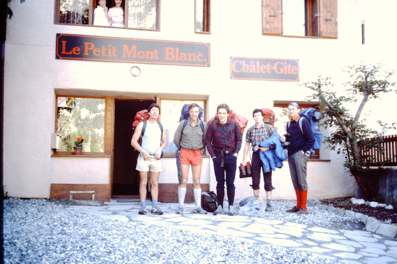 First night gîte, just before we set out for the cable-car. L-R: Brian, Phil, Gordon, Paul, Colin