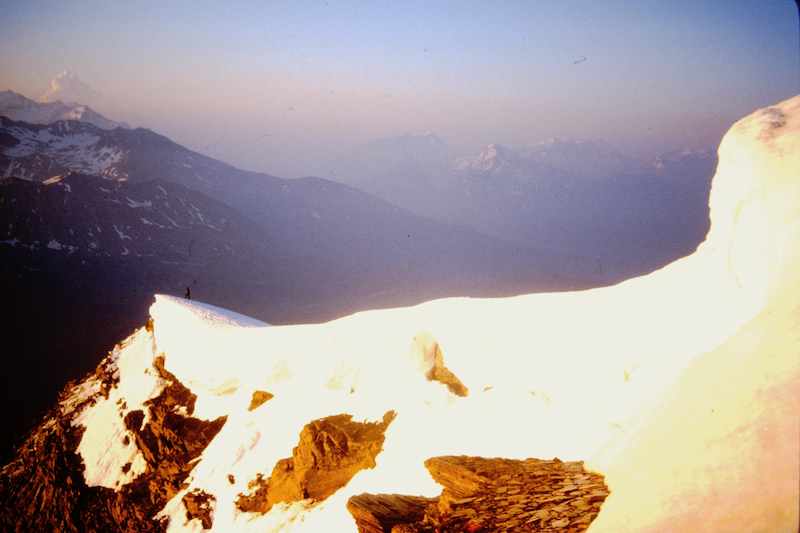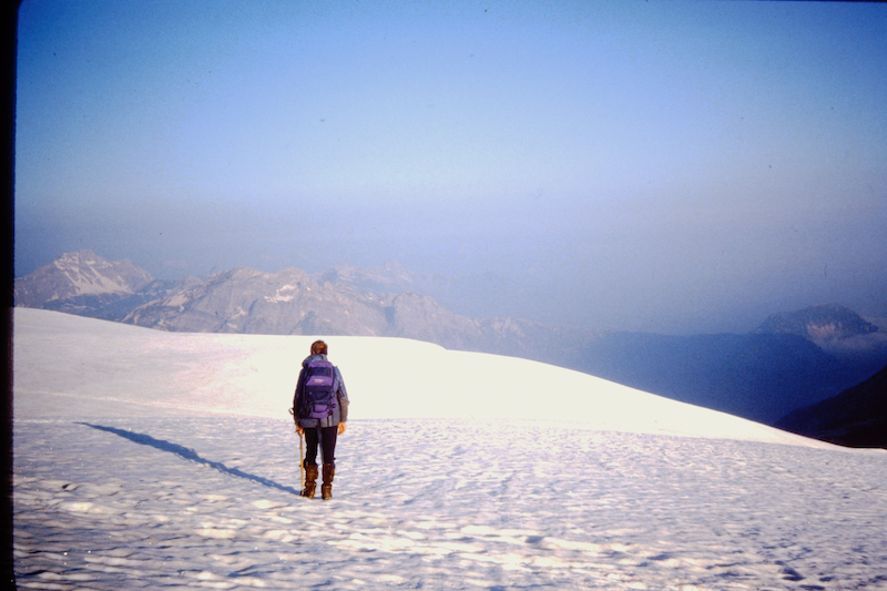 A second memorable day was the ascent of La Grande Motte (3032 metres). Phil and I did this by ourselves; we had seen it along the ridge from La Grande Casse. The ridge walk was too much for me; I don’t know about Phil because he was far more adventurous than I. We had met another party at the refuge that had gone this way and they were happy enough. Anyway, Phil and I made our second trip from a different direction.