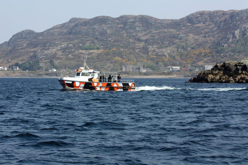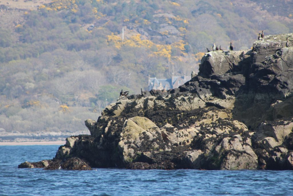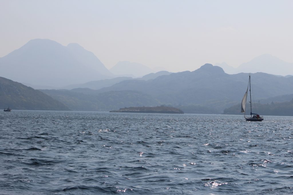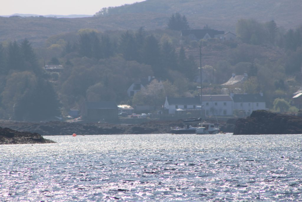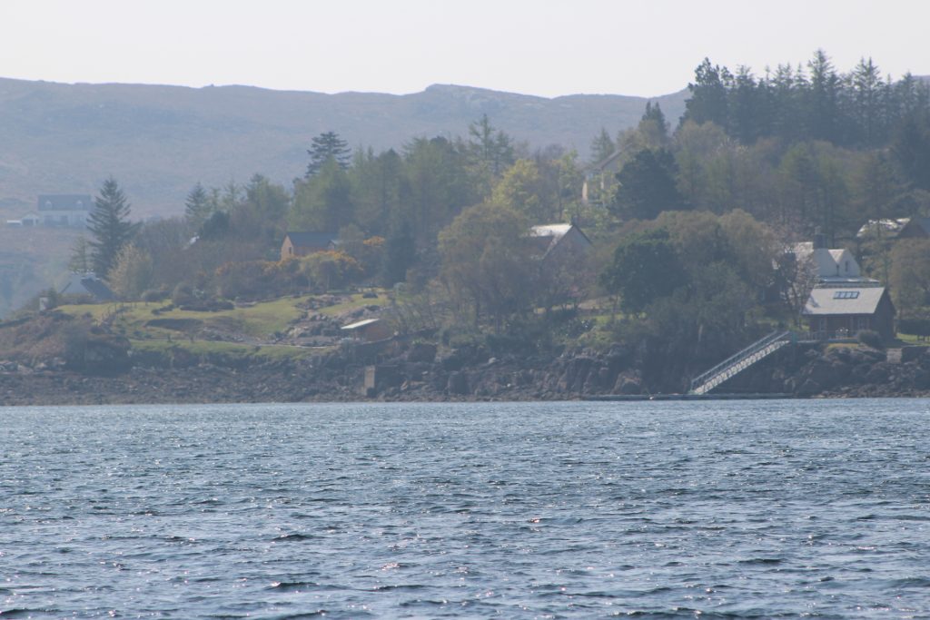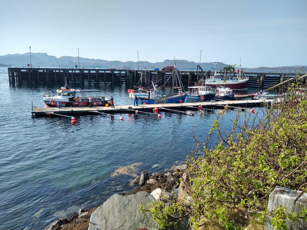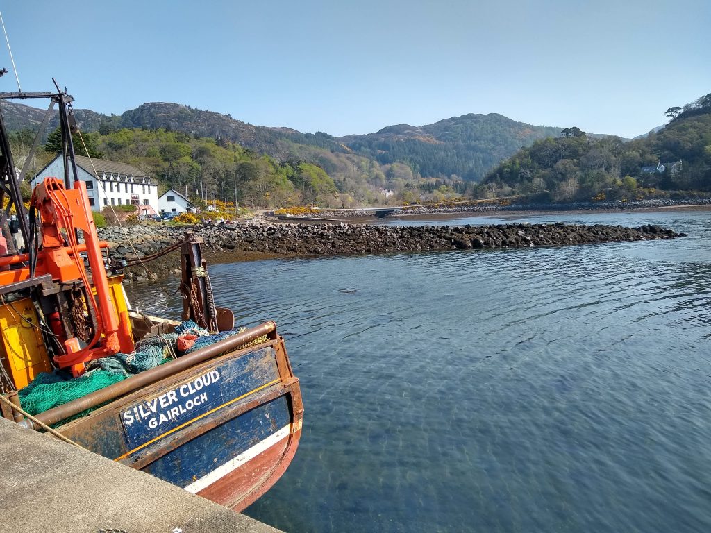 A rest day was needed after a tough hike. So we followed up on our plan to try to take a boat trip to the Shiants and went to Gairloch Harbour where we met “Donna from Doncaster” at one of the cruise operators. We had spoken to her from home previously. She promised to watch for a suitable day when we could join a trip out to these Islands which are very close to the outer Hebrides; to be precise they are about five miles off the shore of the Isle of Lewis. While in Gairloch, we took the 1-hour cruise around the harbour. Afterwards, we noticed an interesting example of recycling where old plastic containers had been turned into what we think are langoustine pots. These small edible lobsters are a local delicacy.